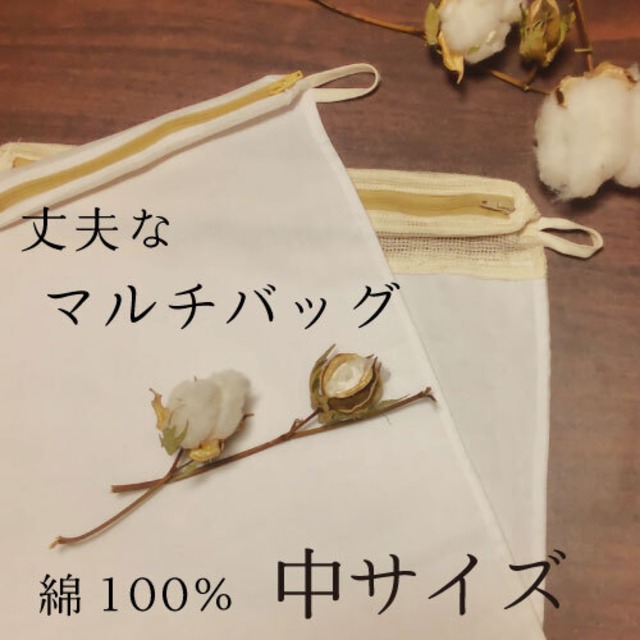 綿100%の万能マルチバッグ「中サイズ」です。 天然素材の丈夫なコットン100%で作られたマルチバッグ、 生地の素材は食品用を使用しているため、洗濯のほか食品にも安心してお使いいただけます。 ケミカル素材が苦手な方や、環境への配慮を大切にしたい方にもおすすめ。 さらに、タンブラー乾燥の際、気になる静電気も軽減! さまざまなシーンで幅広くご利用ください♪ 《様々な使い方》 ⭐︎キッチンで ・野菜の保存・水切り ・出汁取りパック ⭐︎お洗濯に ・デリケートな衣類を守る洗濯ネット ・綿素材は100度の熱湯に耐えます。臭いと雑菌を消去! ・タンブラー乾燥時の静電気対策 ⭐︎お風呂で ・ハーブや薬草を入れた入浴剤パックは、何度も洗って使えます。 手作りのハーブや薬草風呂をお楽しみくださいね。 ■サイズ■ 中 縦40cm 横32cm ※ハンドメイドのためサイズは多少は前後する場合があります。ご了承ください。 ■素材■ コットン生地(無漂白) ファスナー(ポリエステルの化繊ですが耐熱温度は150度ですので、安心して熱湯をおかけいただけます) ■オプション■ コットンメッシュ生地とのツートンカラーでのお作りも可能です(200円)。 上部、下部お好きな方で縫製いたしますのでご希望の方は選択してください。 ※熱湯消毒する衣類は天然素材に限ります。 ニット生地の場合変形の恐れがありますのでご注意ください。 ポリエステルなど合成繊維は熱で変形、溶ける恐れがありますのでご使用はお控えください。