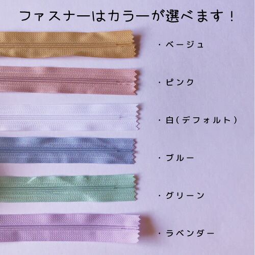 ②ファスナーカラーが選べます。サイズ別にカラーを変えたい場合は「白」でご注文後メッセージ欄で希望カラーをお知らせください。