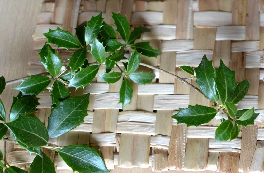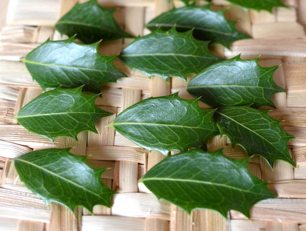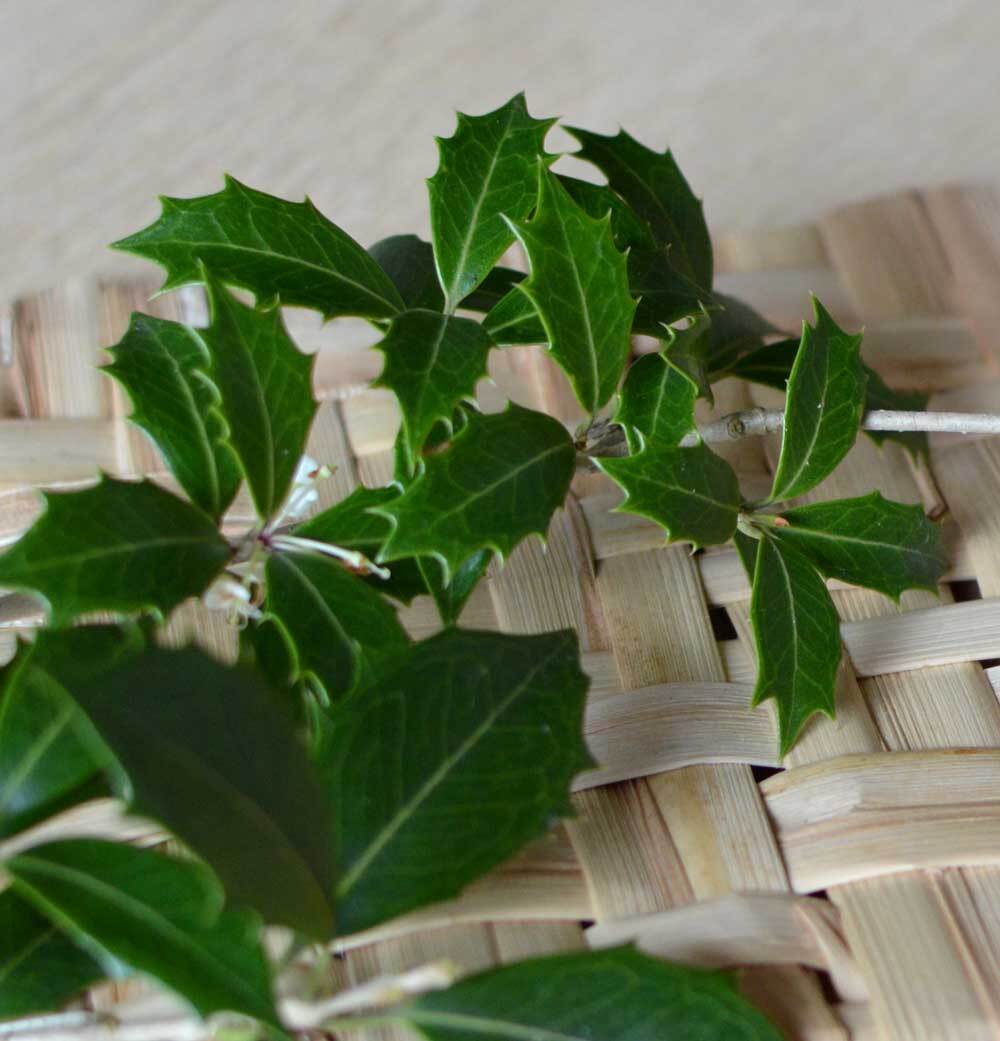 おなじみのクリスマスリースに飾られたギザギザのかわいい葉っぱです。